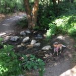 村はほぼ見終わったので、Genoa Bar and Saloonから南へすぐのCarson Streetを山側へ行くと道の終わりにGenoa Canyon Trailheadがあり、ここから里山ハイキングへ。村の北端へつながるGenoa Loop Trailは全長約8.2マイル(約13km) もあるので、行けるとこまで行って、出来れば1時間半くらいで見られる滝を見てから引き返そうというプランで歩き始めました。10分程で小さな滝というか渓流を見て涼んだ後、さらに山道をすすんでいくほどにスイッチバック度が増し、そして道幅が狭い上に片側切り落としで心臓バクバク。軽い気持ちの里山散歩には向かなかったなーと30分でUターンしました。ジュノアとカーソンバレーが見渡せるくらいには登ったのでとりあえずよし!としました。次回は装備と気持ちを万端にして先にある本命滝を拝みに行きたいものです。尚、Trailheadには4~5台のスペースの駐車場(無料)がありました。