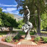 Genoa Country Innの真ん前にある緑豊かな州立史跡公園。ネバダ州とカリフォルニア州をつなぐ街道に金鉱等の交易所として1851年に建てられたのがモルモン・ステーション。園内は緑豊かで木陰のある散歩道があり、当時使われた馬車や農耕具などが展示されているスポットもあります。銅像は ジュノアの英雄、ジョン・”スノーシュー”・トンプソン。1856年~1876年の20年間、カリフォルニア州のプレイサーヴィルとジュノア間の郵便配達を無償で行い、冬の豪雪期間もスキー(あだ名はスノーシューだが、実際にはスキーを使用)を履いて配達をこなした凄い人です。