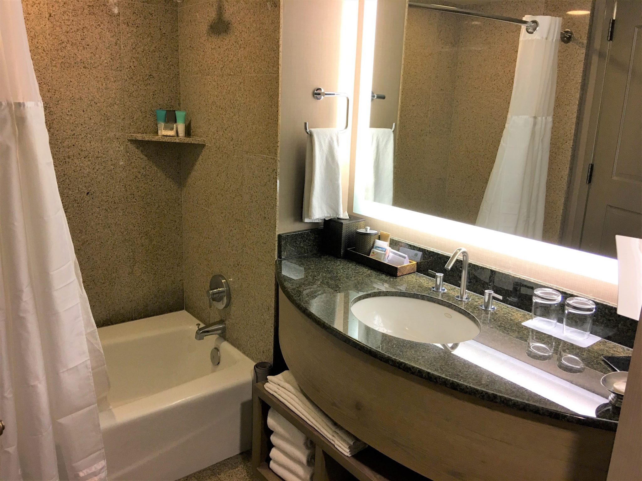 部屋はメインタワーの横のスパ・テラス側のバルコニー付ルームをチョイス。プール・ビューで湖は見えないけど開放感あり満足です。レイクビューの部屋はメインタ上写真でプールをはさんで向こう側に見えるメインタワー棟の高層階になります。部屋は清潔感ありアメニティーも必要なものほぼ揃っており、珈琲セットはスタバでした。ミニ冷蔵庫も付いてて便利です。バスローブはありますが、スリッパはないので部屋履き持参をおすすめ。